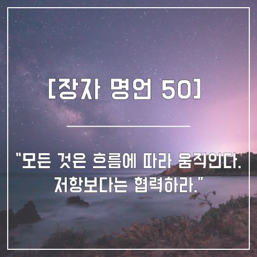 "모든 것은 흐름에 따라 움직인다. 저항보다는 협력하라."는 도의 철학을 기반으로 한 철학적인 지혜를 담고 있습니다. 이 명언은 세상과 삶의 흐름을 자연의 흐름에 비유하고 있습니다. 그리고 그 흐름에 조화롭게 참여하고 협력하는 자세를 강조하고 있습니다.
